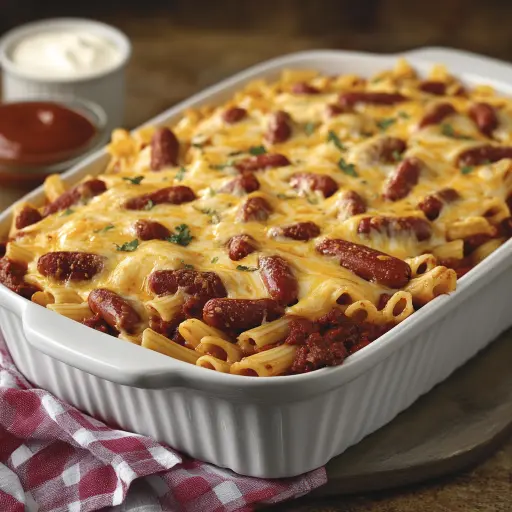 This Loaded Chili Cheese Dog Pasta Bake is more than just a meal; it’s an experience. It’s the perfect dish for those cozy nights in, family gatherings, or when you just need a big hug in food form. With its simple ingredients and easy preparation, it’s a recipe you’ll turn to again and again. The combination of savory chili, juicy hot dogs, tender pasta, and gooey cheese is simply irresistible. So gather your ingredients, preheat your oven, and get ready to enjoy a slice of pure comfort food heaven!