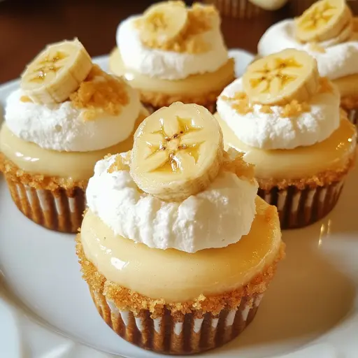Step 8: Add Toppings and Serve. Just before serving, top each mini cheesecake with a dollop of whipped cream, a few slices of fresh banana, and a sprinkle of crushed vanilla wafers (if desired). The fresh banana slices are best added just before serving to prevent browning.