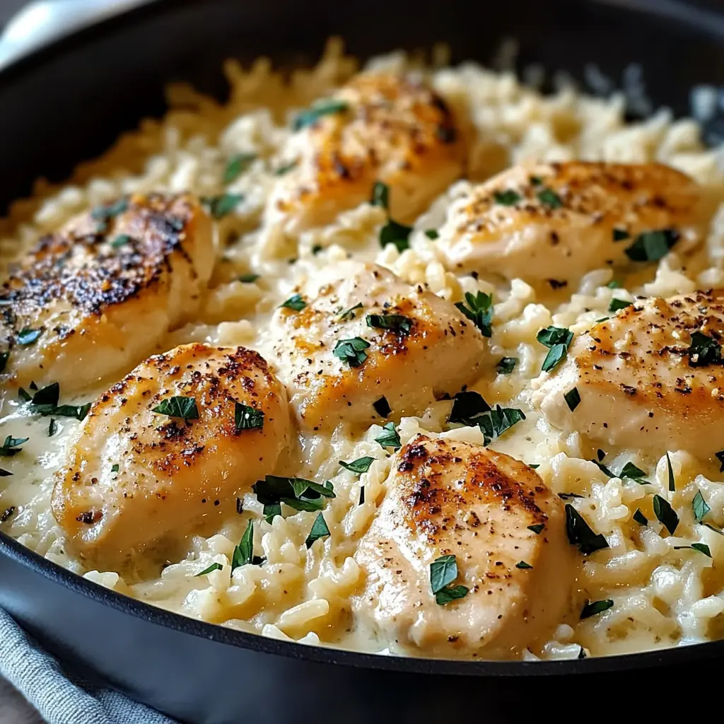 Description of this recipe: One-Pan Creamy Parmesan Chicken and Rice is a simple yet elegant dish that combines tender chicken, perfectly cooked rice, and a rich, creamy Parmesan sauce. This recipe is designed for busy weeknights, offering a complete meal in a single pan with minimal cleanup. It’s a comforting and satisfying dish that will quickly become a family favorite.