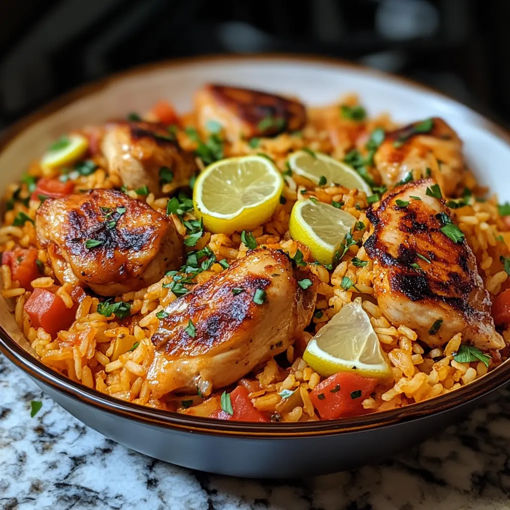 Description of this recipe: This One-Pan Spanish Chicken and Rice recipe brings the vibrant flavors of Spain to your kitchen with minimal effort and cleanup. Tender, juicy chicken, infused with a smoky and savory Spanish spice blend, cooks together with fluffy rice in a single pan, absorbing all the delicious flavors of the broth, lemon, and spices. It’s a complete, satisfying meal perfect for weeknight dinners or casual gatherings.