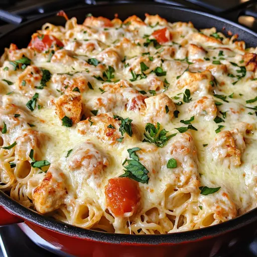 Description: This One-Pot Chicken Parmesan Pasta recipe is a delightful, easy-to-make meal that brings together the classic flavors of chicken parmesan in a comforting pasta dish. Perfect for busy weeknights, this recipe requires minimal cleanup and delivers maximum flavor. With tender chicken, perfectly cooked pasta, rich marinara sauce, and a generous topping of melted cheeses, this dish is sure to become a family favorite. The addition of fresh basil and a touch of red pepper flakes elevates the flavors, creating a well-rounded and satisfying meal.