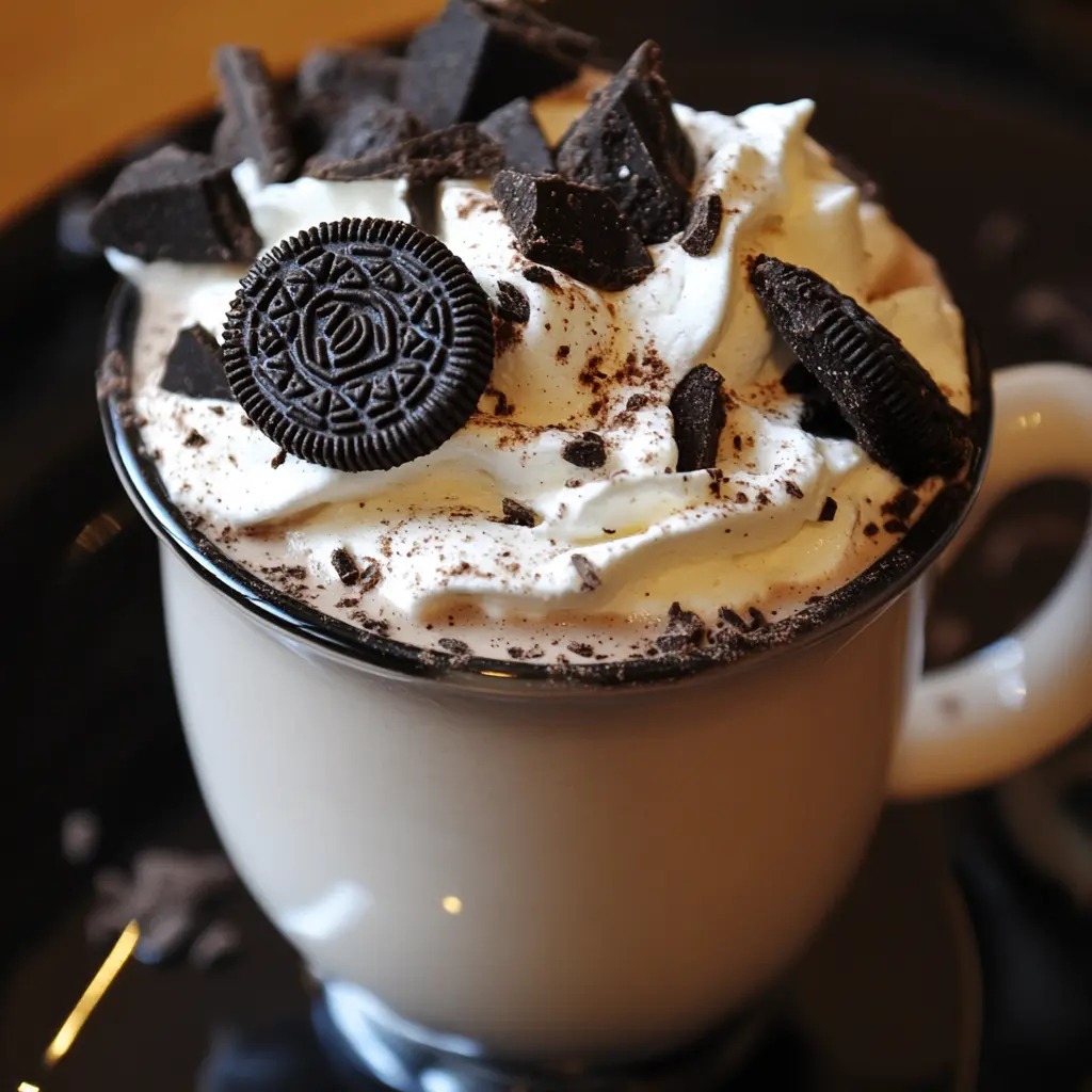 - Classic Style: Serve hot in a mug with whipped cream and Oreo crumbles.