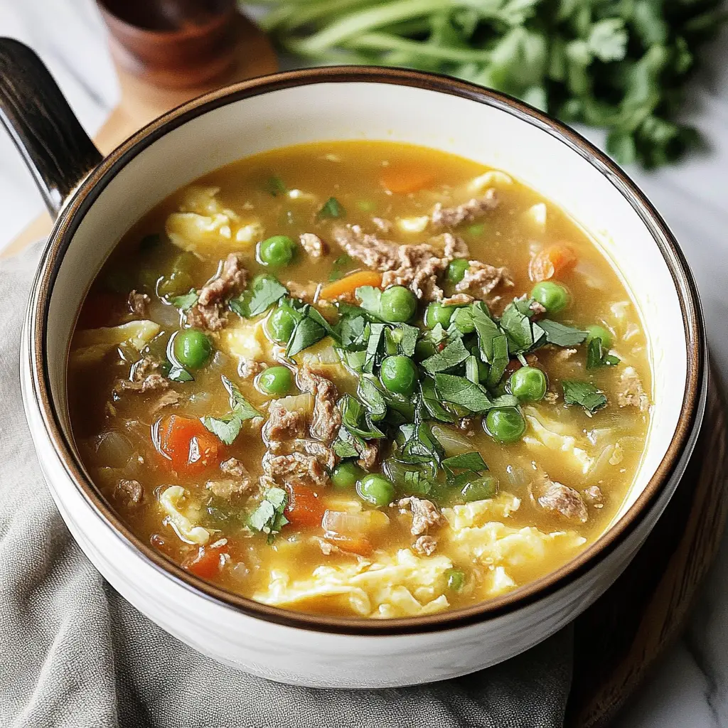 Question 1: Can I make this soup vegetarian or vegan? Answer: Yes, you can easily adapt this recipe to be vegetarian or vegan. Simply replace the ground pork with a plant-based alternative, such as crumbled tofu or tempeh. You can also add more vegetables, such as mushrooms or bell peppers, to make the soup more substantial. Be sure to use vegetable broth instead of chicken broth to keep it vegan.