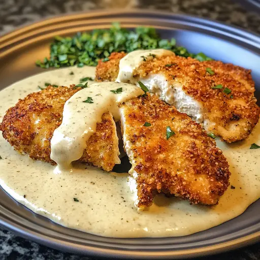 Description: This Parmesan Crusted Chicken with Creamy Garlic Sauce is a weeknight dinner dream come true. Crispy, flavorful chicken breasts coated in a parmesan crust are baked to perfection and then drizzled with a luscious, creamy garlic sauce that will have your taste buds singing. It’s simple, satisfying, and surprisingly elegant, making it perfect for both casual family dinners and special occasions. Get ready for a symphony of flavors and textures that will make this recipe a staple in your kitchen!