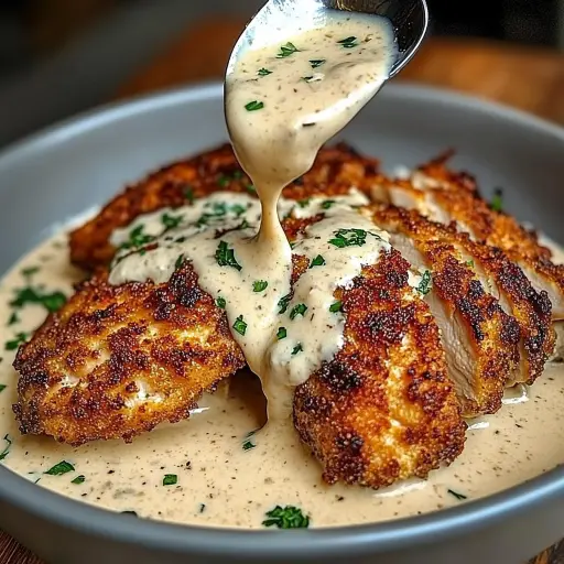 Description: This Parmesan Crusted Chicken with Creamy Garlic Sauce is an easy-to-make, incredibly flavorful dish that elevates simple chicken breasts into a restaurant-quality meal. The crispy, parmesan-infused crust pairs perfectly with the rich and decadent creamy garlic sauce, making it a family favorite for any night of the week. This recipe is designed for simplicity and deliciousness, ensuring even novice cooks can create a dish that impresses.