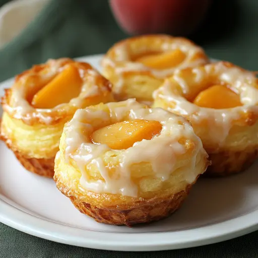 This recipe is designed to be quick and easy, perfect for those times when you crave a homemade treat without spending hours in the kitchen. The use of pre-made pie crust simplifies the process considerably, allowing you to focus on the delicious peach filling and the fun of assembling these delightful cruffins. While using a pre-made crust is convenient, you can certainly use your favorite homemade pie crust recipe if you prefer. The key is to ensure the crust is pliable and easy to work with. For the peaches, fresh, ripe peaches are ideal when in season. However, canned peaches in syrup (drained well) work beautifully and are a great option when fresh peaches are unavailable. Just be sure to pat the canned peaches dry with a paper towel to remove excess moisture.