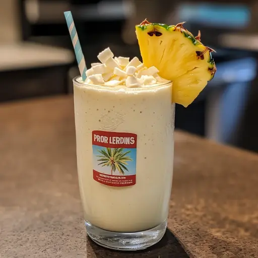 - Pour into a tall glass and garnish with extra shredded coconut, a pineapple wedge, or a maraschino cherry for a festive touch.