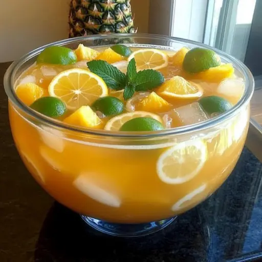 Description: This Pineapple Lemonade Punch is a refreshing and vibrant beverage perfect for parties, picnics, or any occasion where you need a crowd-pleasing drink. Combining the tangy zest of lemonade with the tropical sweetness of pineapple and the fizzy kick of Sprite, this punch is incredibly easy to make and wonderfully delicious. It’s a delightful blend of flavors that will have everyone coming back for more.
