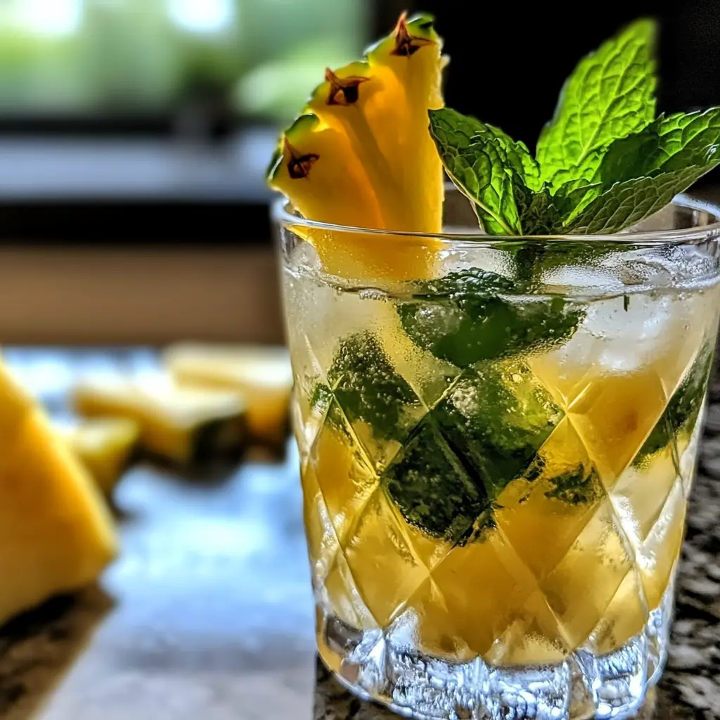 - Serve chilled in a tall glass with a sprig of mint and a pineapple wedge for garnish.
