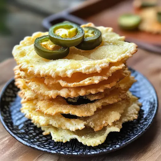 Description: A simple yet satisfying two-ingredient recipe that combines the sharpness of cheddar cheese with the spicy kick of jalapeños. Perfect as a low-carb snack, these crisps are quick to make and are sure to become a favorite for cheese and spice lovers alike.