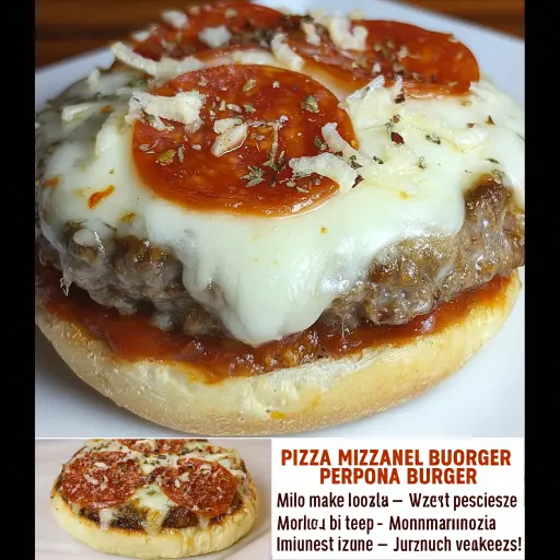 Description: Savory beef-sausage patties topped with marinara, melted cheese, and pepperoni—your two faves in one epic handheld! This recipe combines the best of both worlds: the satisfying heartiness of a burger with the irresistible flavors of pizza. Imagine sinking your teeth into a juicy, perfectly seasoned patty, blanketed in gooey mozzarella, tangy marinara sauce, and crispy pepperoni slices, all nestled between toasted burger buns. This isn’t just a meal; it’s an experience that will tantalize your taste buds and leave you craving more. Whether you’re hosting a casual gathering, looking for a fun family dinner, or simply want to treat yourself, this Pizza Burger is sure to be a crowd-pleaser. It’s easy to make, customizable to your preferences, and guaranteed to deliver a burst of flavor in every bite. Get ready to elevate your burger game with this epic fusion creation!