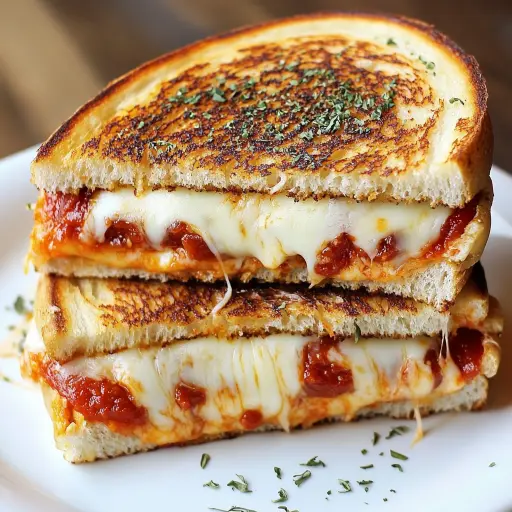 Description: A symphony of flavors and textures, this Pizza Grilled Cheese Sandwich marries the comforting familiarity of a grilled cheese with the irresistible allure of pizza. Imagine crispy, golden-brown bread embracing layers of melted mozzarella, savory pepperoni, and a luscious garlic parmesan butter. This isn’t just a sandwich; it’s an experience, a culinary hug that’s ready in just 20 minutes. Get ready to elevate your lunch game with this simple yet extraordinary recipe.