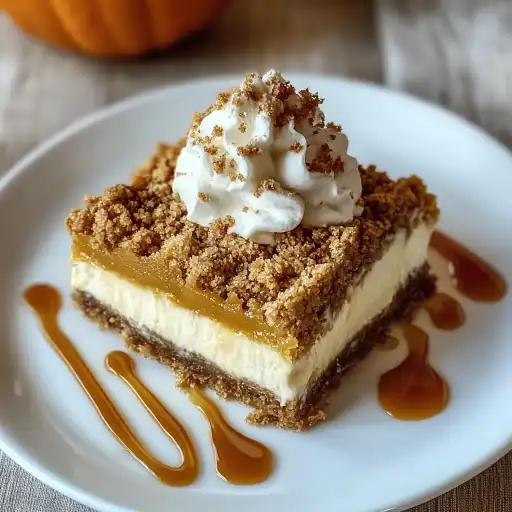 Description of this recipe: These Pumpkin Cheesecake Bars are a delightful twist on classic cheesecake, perfectly capturing the essence of fall. Creamy, rich cheesecake filling infused with pumpkin puree and warm spices sits atop a buttery graham cracker crust, creating a decadent dessert that’s both comforting and impressive. Each bite offers a harmonious blend of textures and flavors, making these bars an irresistible treat for any occasion.