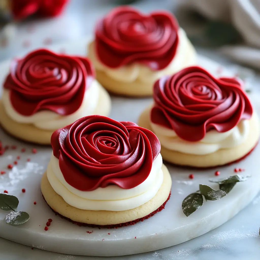 Red Velvet Butter Cookie Roses are not just a feast for the eyes; they are a delight for the palate. The rich, velvety flavor of the cookies, complemented by the tangy sweetness of the cream cheese filling, creates an unforgettable taste experience. These cookies are versatile enough for any celebration, whether it’s a birthday, wedding, or a simple afternoon tea. The vibrant red color adds a festive touch, making them perfect for holidays like Valentine’s Day or Christmas. With their soft texture and stunning presentation, these cookies are sure to impress your family and friends.