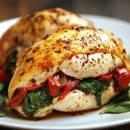 Description: A delicious and healthy dish featuring juicy chicken breasts filled with a vibrant mixture of roasted red peppers and spinach. This recipe is perfect for a weeknight dinner or a special occasion, offering a flavorful and satisfying meal.