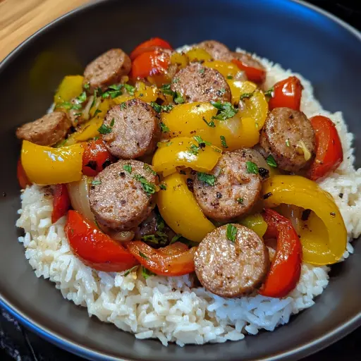 Description: This hearty and flavorful dish combines the savory goodness of smoked sausage with the sweetness of bell peppers, onions, and juicy tomatoes, all served over a bed of fluffy white rice. It’s a quick and easy one-pan meal perfect for a weeknight dinner, offering a delightful blend of textures and tastes that the whole family will enjoy.