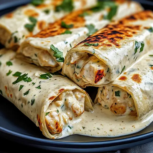 These Savory Chicken Wraps are best enjoyed fresh, but they can also be served with a side of mixed greens or a light salad for added crunch and nutrition. A dollop of extra garlic cream sauce on the side can enhance the flavor even further. For a spicy kick, consider adding some sliced jalapeños or a drizzle of hot sauce.