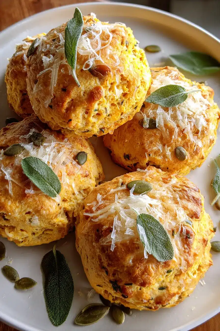 These Savory Pumpkin Parmesan Scones are incredibly versatile and can be served in a variety of ways. Enjoy them warm with a pat of butter for a simple yet satisfying snack. They also pair beautifully with soups, salads, and stews, making them a perfect addition to a hearty meal. For a more elegant presentation, serve them as part of a brunch spread with smoked salmon, cream cheese, and fresh herbs. They also make a wonderful addition to a Thanksgiving or holiday appetizer platter.