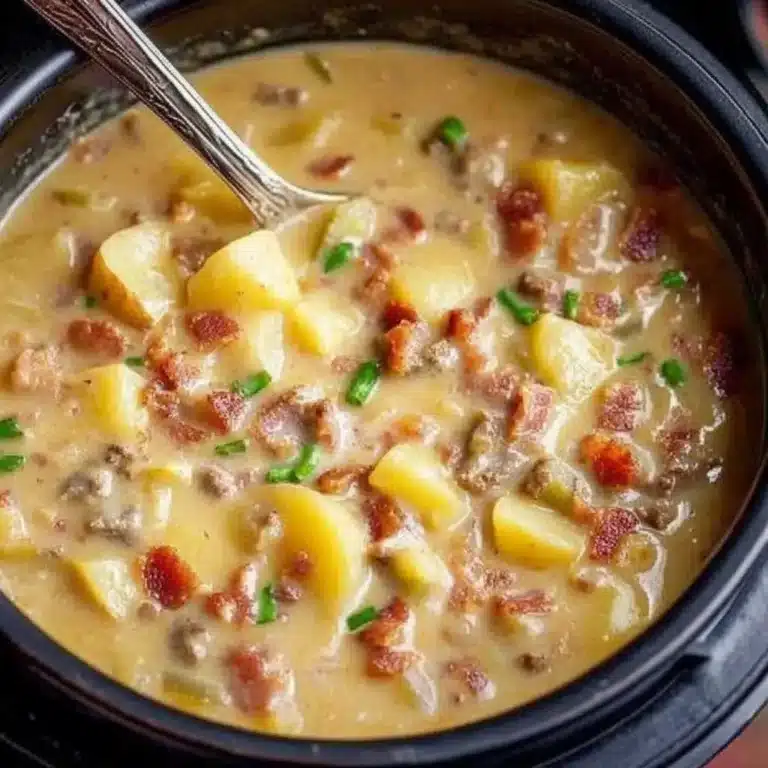 Description of this recipe: This Slow Cooker Creamy Potato Bacon Soup is the epitome of comfort food. It’s rich, hearty, and packed with flavor, thanks to crispy bacon, tender potatoes, and a creamy, decadent broth. This recipe is incredibly easy to make, primarily hands-off, and perfect for busy weeknights or cozy weekends. The slow cooker does most of the work, transforming simple ingredients into a deeply satisfying and soul-warming soup that everyone will love. The aroma alone, as it simmers throughout the day, is enough to make your mouth water!