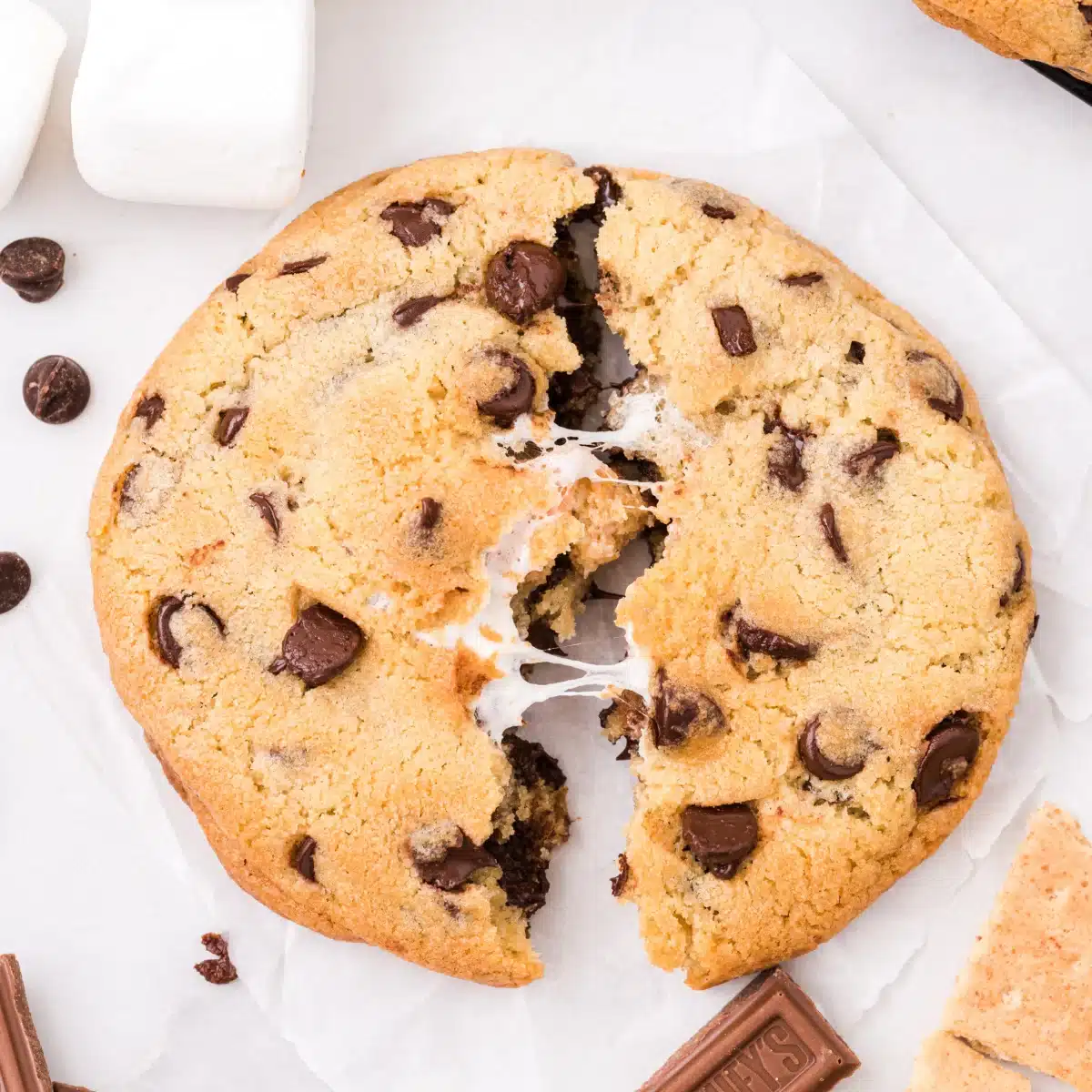 Chilling the dough is crucial for thick, bakery-style cookies, so don’t skip the freezer step. If you want an extra toasted marshmallow flavor, lightly toast the marshmallows before stuffing them into the cookies. Use high-quality chocolate for the best flavor impact. If your kitchen is warm, work quickly to prevent the dough from becoming too soft. Store leftover cookies in an airtight container and reheat briefly in the microwave for that fresh-from-the-oven texture.