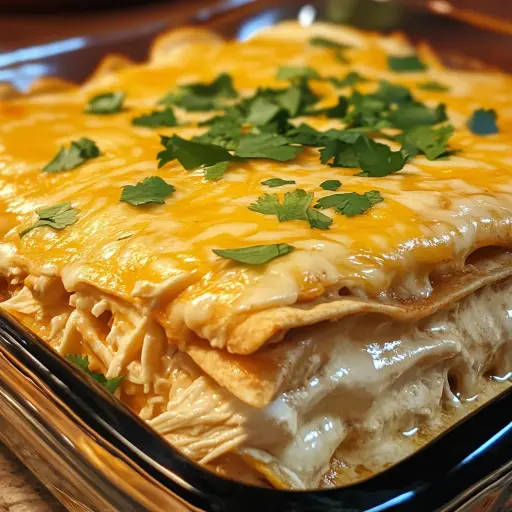 Repeat the layers, starting with the remaining four corn tortillas, followed by the remaining chicken mixture, and finally, topping it all off with the remaining shredded cheese. Make sure the cheese is evenly distributed to ensure a beautiful, golden-brown crust.