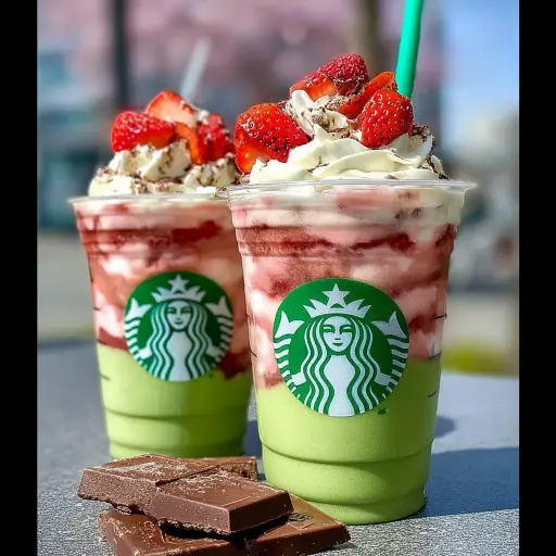 The Starbucks Matcha Chocolate Strawberry Frappuccino is a delightful and customizable treat that brings together the best of fruity, chocolatey, and earthy flavors in one visually stunning beverage. This recipe allows you to recreate a coffee shop favorite in your own kitchen, with the added benefit of controlling the ingredients and sweetness levels. Whether you’re looking for a refreshing summer drink, a festive party beverage, or a cozy treat for a chilly evening, this layered Frappuccino is sure to impress. Enjoy the process of creating this colorful and flavorful masterpiece, and savor each sip of this harmonious blend of strawberry, chocolate, and matcha. With its ease of preparation and endless possibilities for customization, this Frappuccino is a recipe you’ll want to make again and again.