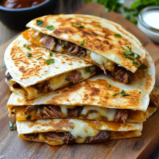Description: Elevate your quesadilla game with these gourmet Steak & Cheese Quesadillas! Featuring tender, thinly sliced steak, sautéed peppers and onions, and a generous blend of melted cheeses, all nestled within perfectly golden and crispy tortillas. This recipe delivers a symphony of flavors and textures that will transform a simple snack or lunch into a culinary experience. Perfect for a quick weeknight dinner or a fun weekend gathering, these quesadillas are guaranteed to be a crowd-pleaser.
