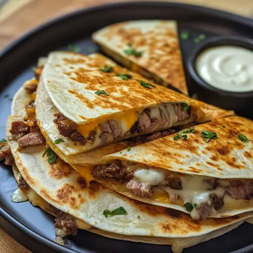 These Steak & Cheese Quesadillas are delicious on their own, but they’re even better with a few simple accompaniments. Serve them with a side of sour cream, guacamole, salsa, or pico de gallo for dipping. A sprinkle of fresh cilantro adds a bright, herbaceous touch. For a more substantial meal, pair them with a side salad or Mexican rice and beans. Don’t forget the hot sauce! A drizzle of your favorite hot sauce adds a welcome kick of heat.