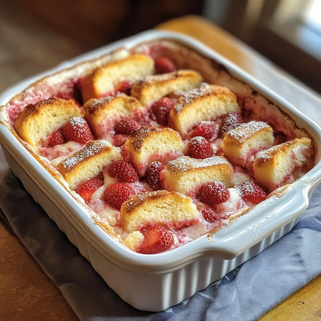 This delightful twist on the classic bread and butter pudding combines the luscious flavors of strawberries and cream, creating a dessert that is both comforting and sophisticated. The creamy custard envelops layers of jam-filled bread, resulting in a warm, indulgent treat that is perfect for any occasion.
