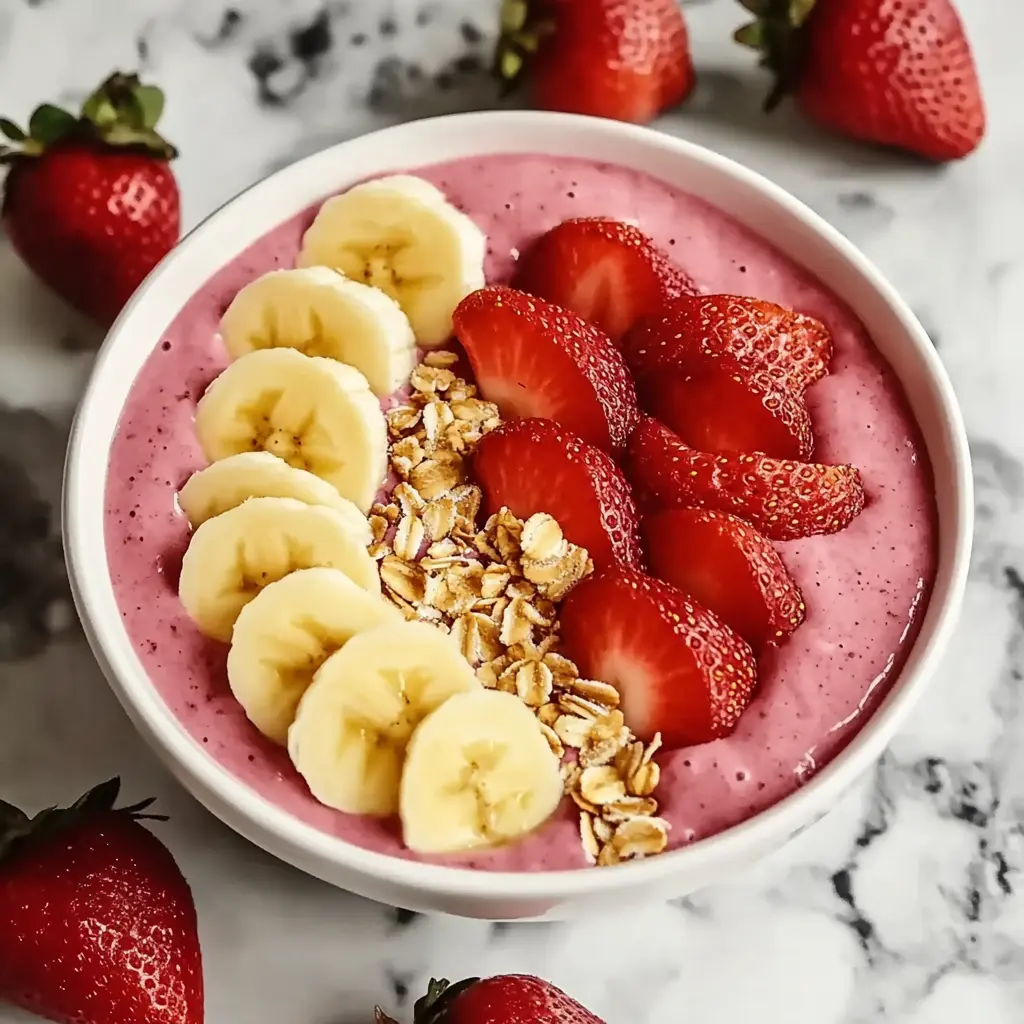 Description of this recipe: This vibrant and delicious Strawberry Banana Smoothie Bowl is a quick, easy, and healthy way to start your day or enjoy a refreshing snack. Packed with fruity flavors, creamy texture, and customizable toppings, it’s a delightful treat that will satisfy your sweet cravings without any guilt. This bowl is a fantastic way to incorporate more fruits and healthy toppings into your diet, making it a wholesome and fulfilling meal.