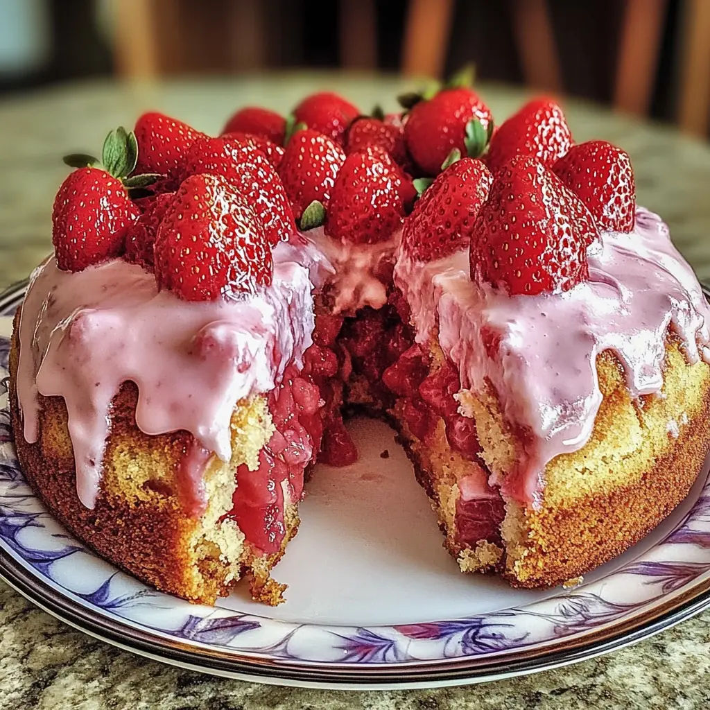 Step 8: After the cake has cooled for about 10–15 minutes, drizzle the strawberry cream icing evenly over the top. Allow the icing to set completely before slicing and serving the cake. This will prevent the icing from running and make for a neater presentation. The cooling time also allows the flavors of the cake and icing to meld together, enhancing the overall taste.