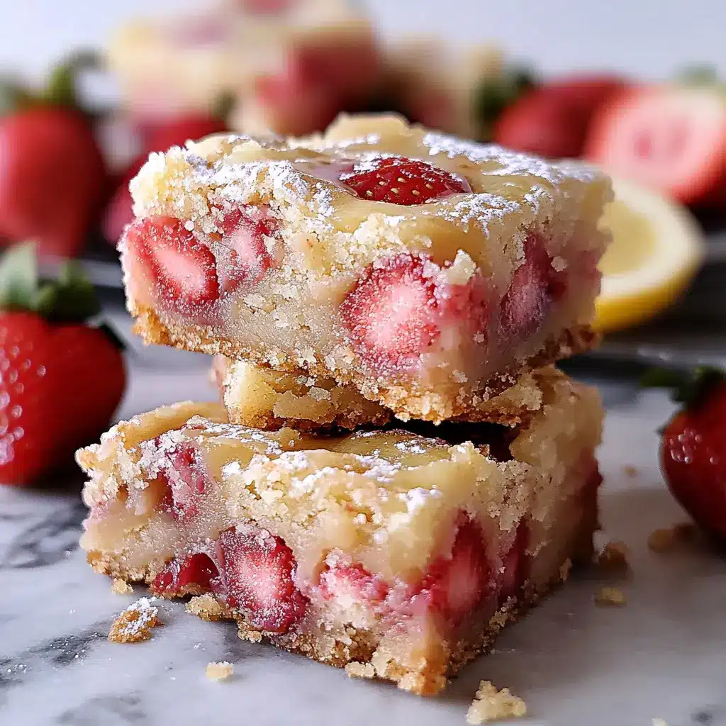 - Beautiful Presentation: The vibrant red strawberries speckled throughout the golden blondies make them visually appealing and inviting.