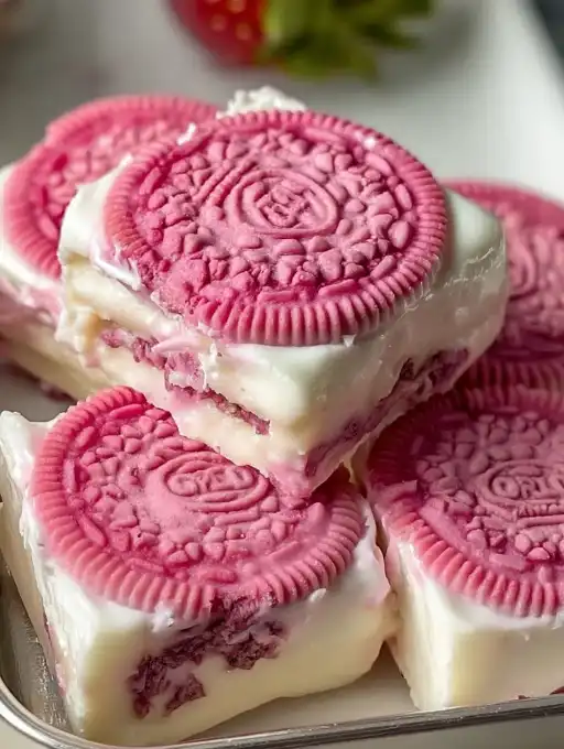 These Strawberry Oreo Cream Bars are a delightful no-bake treat, perfect for parties, potlucks, or just a sweet indulgence. The combination of crunchy Strawberry Oreos and a creamy white chocolate filling is irresistible. The bright pink hue makes them visually appealing, and the customizable nature of the recipe allows you to tailor it to your specific preferences. The bars are rich, sweet, and incredibly easy to make, requiring minimal effort and ingredients.