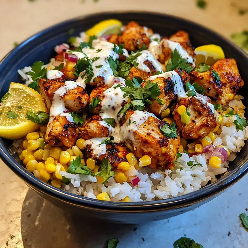 - Explosion of Flavors: This bowl is a symphony of tastes and textures, from the savory chicken and fluffy rice to the creamy, cheesy, and slightly spicy street corn topping.