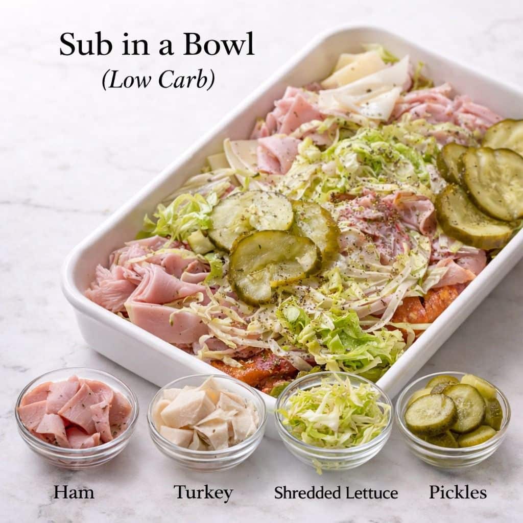 This Sub in a Bowl recipe brings all the flavors of your favorite deli sandwich into a fresh, low-carb format. By ditching the bread and opting for a crisp lettuce base, you get a satisfying and protein-packed meal that’s perfect for lunch or a light dinner. It’s quick to assemble, customizable with your preferred deli meats and toppings, and drizzled with a tangy vinaigrette that ties everything together. Whether you’re watching your carb intake or simply looking for a refreshing alternative to traditional sandwiches, this Sub in a Bowl is a winner.