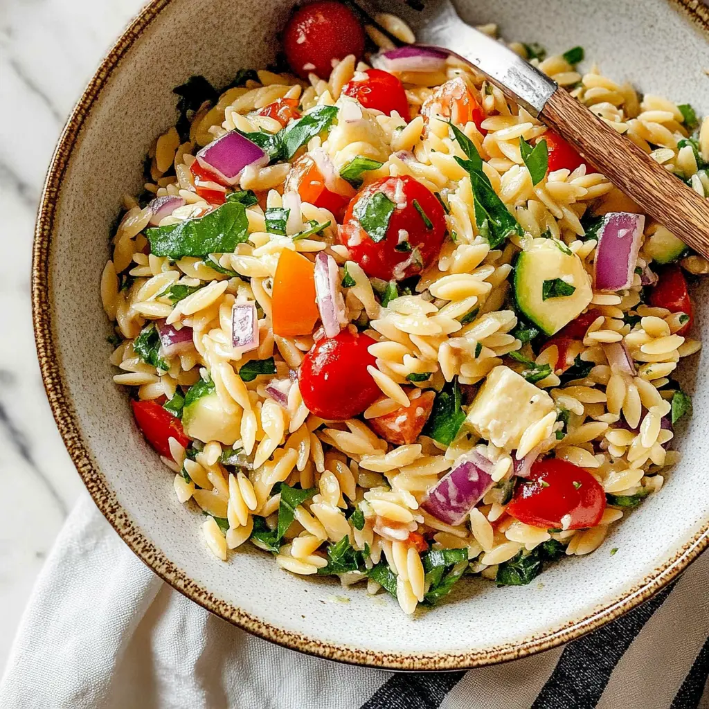 You’ll adore this Summer Orzo Pasta Salad for its simplicity, versatility, and incredible taste. It’s incredibly easy to make, requiring minimal cooking and mostly just chopping and mixing. The salad is also highly adaptable; you can easily customize it with your favorite vegetables, cheeses, or herbs. It’s a fantastic way to use up leftover cooked pasta and fresh produce. But most importantly, you’ll love how the flavors come together in perfect harmony. The salty feta, sweet tomatoes, crunchy cucumber, and zesty dressing create a symphony of taste that will leave you wanting more. It’s a light yet filling dish that’s perfect for warm weather. Plus, it’s a great make-ahead option, as the flavors only intensify as it sits.