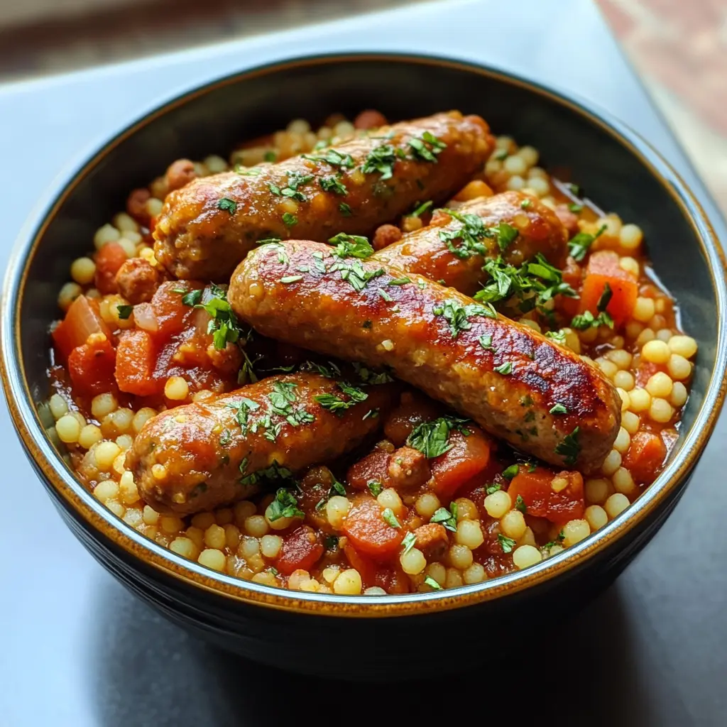 Once the couscous is cooked, fluff it gently with a fork. Taste and adjust the seasoning as needed. Serve the Summer Sausage Stew hot, garnished with freshly chopped parsley.