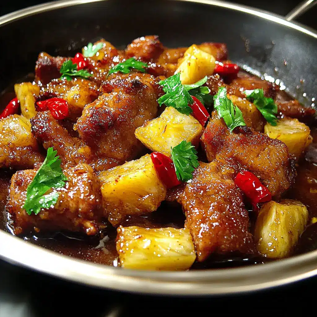 Step 8: Garnish with freshly chopped cilantro before serving. The fresh cilantro adds a vibrant pop of color and a refreshing herbal note that complements the rich flavors of the pork and pineapple. It elevates the dish’s presentation and adds a final touch of flavor complexity.