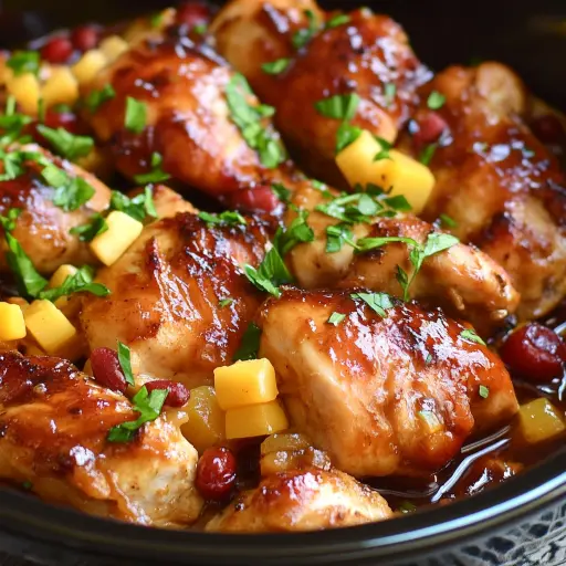Description: Transport your taste buds to the islands with this effortlessly delicious Sweet Hawaiian Crockpot Chicken. Tender chicken pieces are slow-cooked in a tangy and sweet pineapple-infused sauce, creating a family-friendly meal that’s perfect for busy weeknights. The optional addition of pineapple chunks, onion, and green pepper elevates the dish with bursts of fresh flavor and vibrant color. This recipe is a culinary vacation in a single pot!