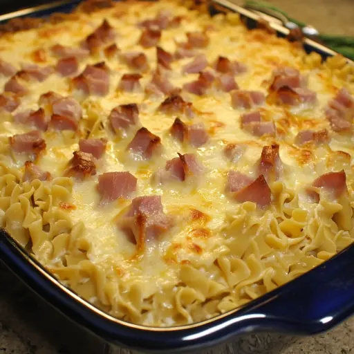 Description: Indulge in the ultimate comfort food with this Swiss Ham and Noodle Casserole. Creamy, cheesy, and packed with savory ham, this easy-to-make casserole is perfect for a weeknight dinner or a potluck gathering. The combination of tender egg noodles, a rich cream of onion base, nutty Swiss cheese, and smoky ham creates a symphony of flavors that will leave you craving more. This is not just a meal; it’s a warm hug on a plate!