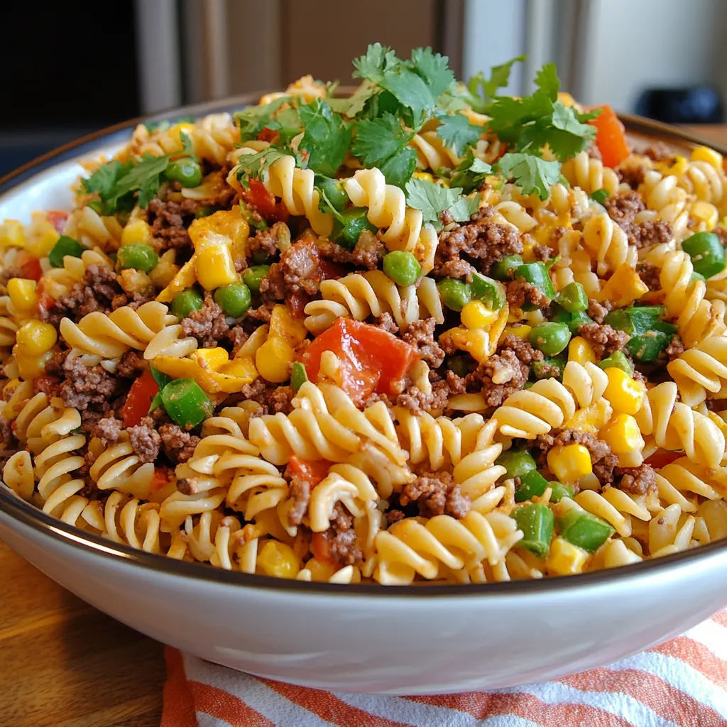 Taco Pasta Salad is a fun and flavorful dish that brings together the best of both worlds—pasta and tacos! Imagine a colorful bowl filled with rotini pasta, seasoned ground beef, fresh veggies, and a zesty dressing, all topped off with crunchy tortilla chips. This dish is a crowd-pleaser, perfect for gatherings or as a quick family meal. With its vibrant colors and bold flavors, Taco Pasta Salad is sure to become a favorite in your household.