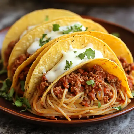 Description Taco Spaghetti is a delightful fusion dish that combines the comforting familiarity of spaghetti with the zesty, savory flavors of tacos. This recipe is perfect for a quick weeknight dinner, offering a crowd-pleasing meal that’s both easy to make and incredibly satisfying. It’s a creative way to spice up your pasta routine and introduce a Tex-Mex twist to a classic Italian dish.