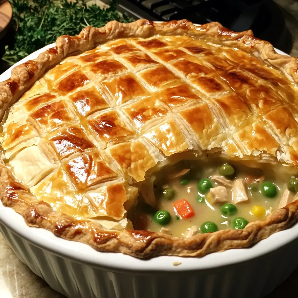 Serve this scrumptious turkey pot pie with a side of cranberry sauce for a delightful contrast of flavors. A simple green salad or roasted vegetables can also complement the dish beautifully, adding a fresh touch to your meal. For a cozy evening, pair it with a glass of your favorite white wine or a warm apple cider.