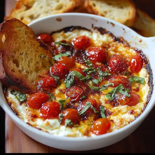 Description: A warm, comforting, and utterly delicious dip that elevates the classic bruschetta flavors into a shareable appetizer. This Three-Cheese Tomato Bruschetta Dip combines the sweetness of roasted tomatoes with the creamy richness of ricotta, mozzarella, and Parmesan, all infused with garlic, basil, and a touch of balsamic glaze. Perfect for gatherings, parties, or simply a cozy night in, this dip is sure to be a crowd-pleaser. It’s incredibly easy to make and requires minimal prep, making it a go-to recipe for any occasion. Whether you’re looking for a flavorful appetizer or a delightful snack, this bruschetta dip delivers a burst of Italian-inspired goodness in every bite. Serve it with crusty crostini, toasted baguette slices, or even vegetables for a versatile and satisfying treat.