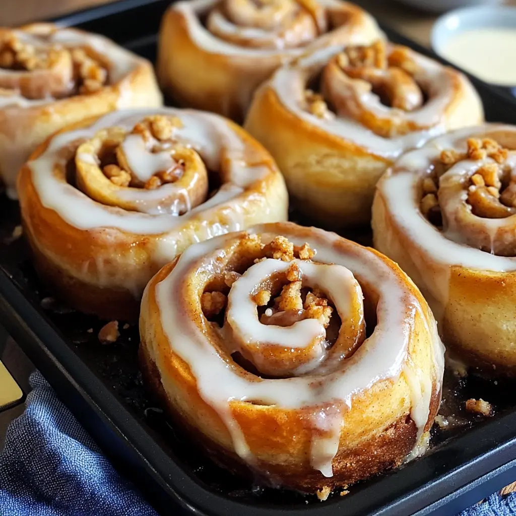 Description: These Toffee Apple Cinnamon Buns are a decadent and comforting twist on the classic cinnamon roll. Featuring tender, cinnamon-spiced dough swirled with a sweet and tangy apple filling and crunchy toffee bits, then topped with a luscious apple juice glaze and even more toffee, these buns are the perfect treat for a weekend brunch, special occasion, or any time you crave a warm, indulgent pastry.