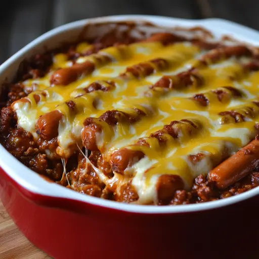 Description: A comforting, crowd-pleasing casserole that transforms classic chili cheese dogs into an easy-to-bake dish. Perfect for weeknight dinners, potlucks, or game day gatherings! The ultimate comfort food explosion in every bite.